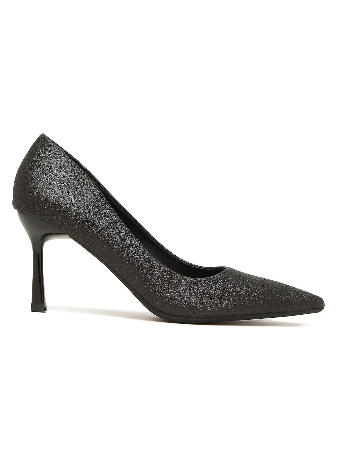 • A pair of Black Pumps has Slip on with Pointed Toe.