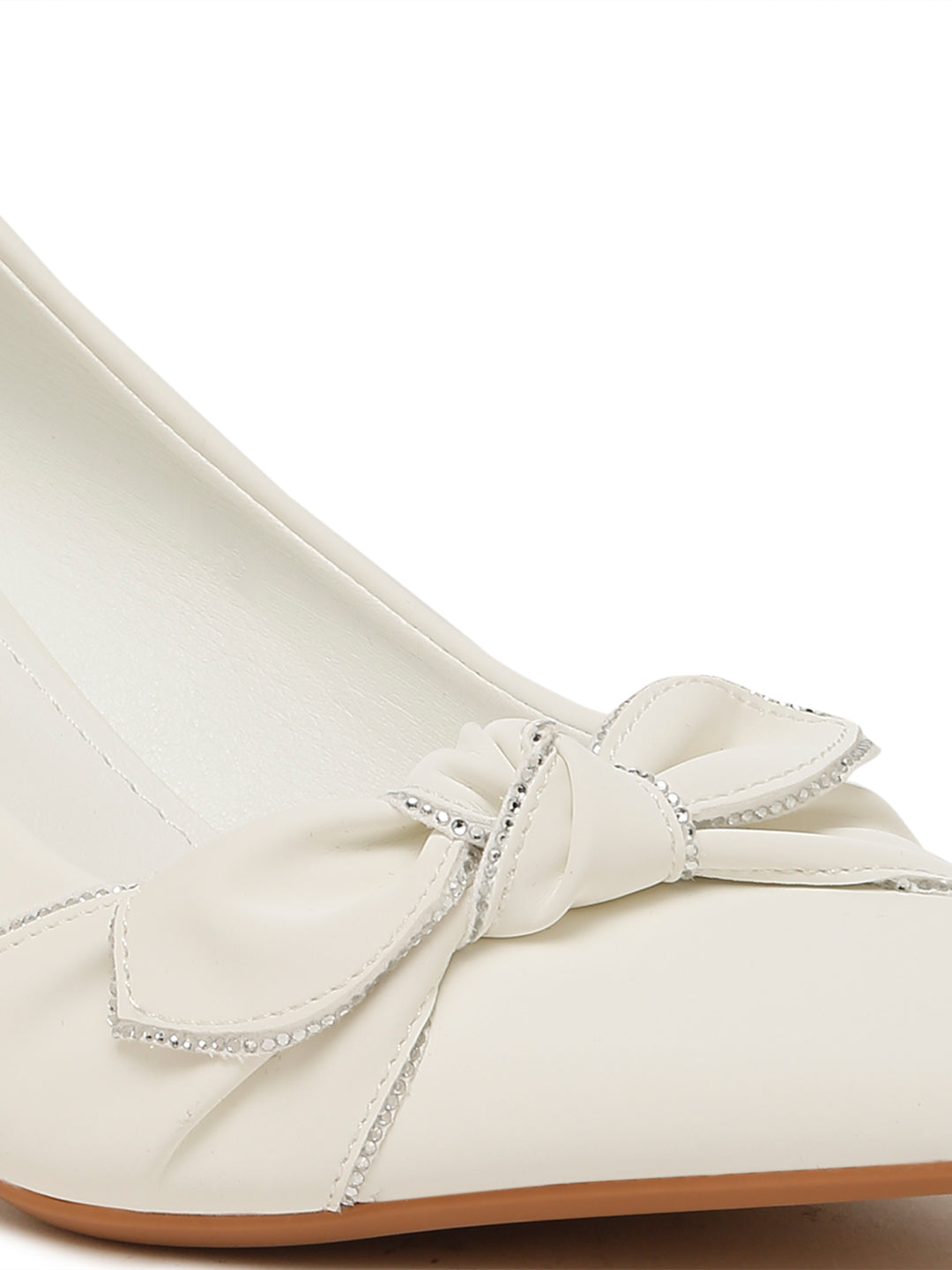• A pair of White Pumps has Slip on with Pointed Toe.